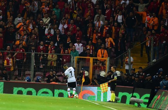 Karşılaşmanın ikinci yarısında Galatasaraylı taraftarlar, Beşiktaş’ın kaptanı Quaresma’ya tepki gösterdi.