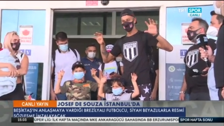Beşiktaş maskesi ve Bırakmam Seni tişörtüyle havalimanından çıkış yapan Josef de Souza, basın mensuplarına ailesiyle birlikte kartal pençesi pozu verdi. Josef de Souza'nın yakın zamanda Beşiktaş ile resmi sözleşme imzalaması bekleniyor.