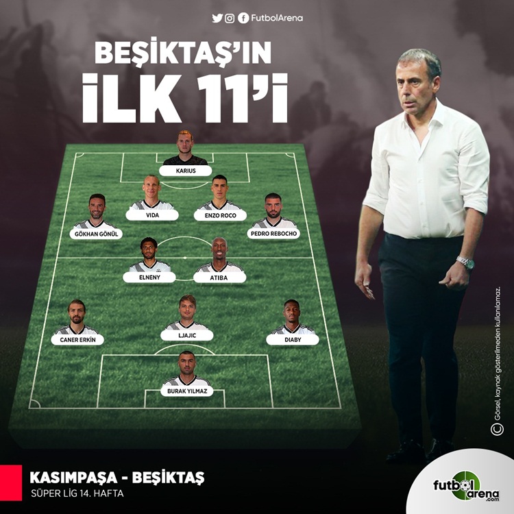 Beşiktaş ilk 11'i: Karius, Rebocho, Vida, Roco, Gökhan, Elneny, Atiba, Caner, Diaby, Adem Ljajic, Burak Yılmaz