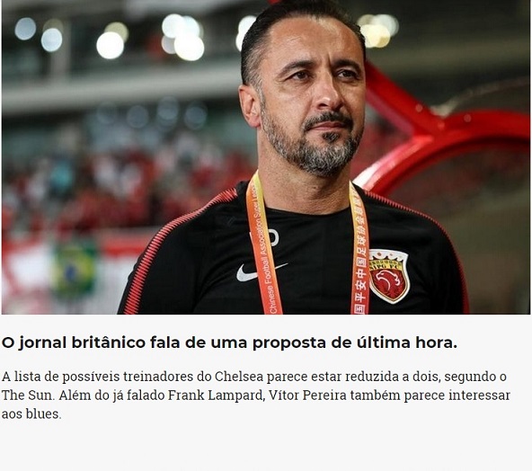 İngiliz basınında The Sun'ın haberine göre, Shanghai SIPG takımını çalıştıran ve geçtiğimiz sezon şampiyonluk yaşayan Vitor Pereira Chelsea yönetiminin teknik direktör listesi adayları arasında.