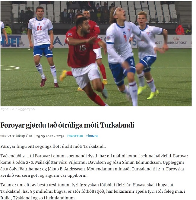 Faroe Adaları basını, Faroe futbolu ve Milli Takım açısından tarihi bir maç oynadıklarını, tarihi bir galibiyet aldıklarını yazdı. Ülke basınında, "85 milyonlu, Avrupa'nın büyük kulüplerinde oynayan futbolculara sahip olan Türkiye karşısında tarihi bir galibiyet. Faroe futbolu için tarihi maç. Milli Takım son yıllardaki en iyi sonucunu aldı." ifadelerine yer verildi.