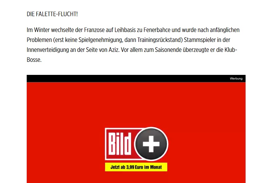 Alman Bild gazetesi, son haftalarda savunmada düzenli oynayan Falette'nin performansıyla teknik heyet ve yöneticileri ikna ettiğini yazdı. 28 yaşındaki futbolcunun satın alma opsiyonu Fenerbahçe'de bulunuyor. Falette'nin satın alma opsiyonunun kullanılıp kullanılmayacağı önümüzdeki günlerde netlik kazanacak.