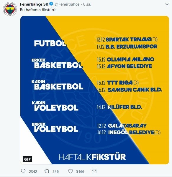 Fenerbahçe Kulübü’nün resmi sosyal medya hesabı, Akhisarspor yenilgisinin ardından ilk paylaşımını yaptı.. Kötü gidişin ardından teknik direktör Ersun Yanal’ın göreve getirilmesini isteyen ve kulübün resmi açıklaması için sabırsızlanan sarı-lacivertli taraftarlar, futbol, basketbol ve voleybolda haftanın fikstürü paylaşımına tepki gösterdi.