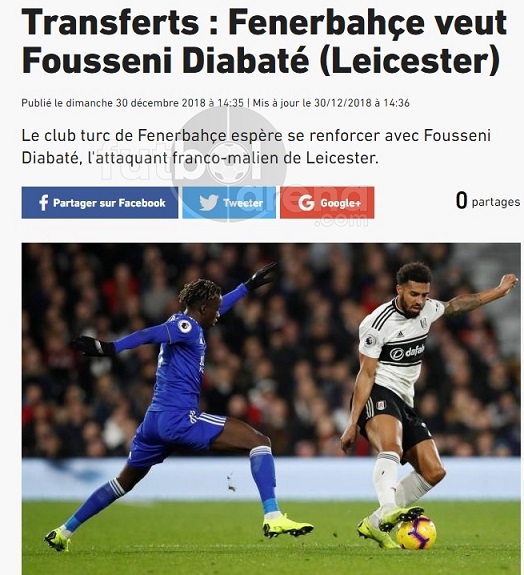 Leicester City'den sezon başında Slimani'yi kiralayan fakat beklediği performansı alamayan Fenerbahçe, bu kez aynı takımdan Fosseini Diabate için devrede. Fransız basınında L'Equipe'in haberine göre, Fenerbahçe kulübü 23 yaşındaki futbolcu oldukça için oldukça istekli.