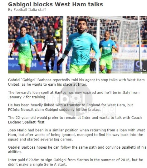 İtalyan basınında yer alan haberlere göre Gabigol, Inter'de kalmaya niyetli. Santos ile kiralık sözleşmesi biten ve İtalyan takımına geri dönen Gabigol'e başta Fenerbahçe olmak üzere birçok İngiliz takımından teklifler olduğu iddia edilmişti. Ancak genç futbolcunun Inter ile devre arası kampına katılmak ve kendisini kanıtlayarak takımda kalmak istediği belirtildi. Gabigol'ün menajerine talimat vererek, transfer görüşmelerini durdurmasını istediği ifade edildi.