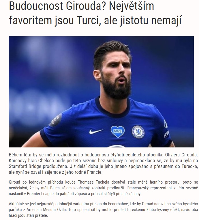 Öte yandan Çekya basını ise Fenerbahçe'nin hala güçlü bir aday olduğunu yazdı. Çekya basını "Şu anda en olası seçenek Giroud'un Mesut Özil'in de forma giydiğİ Fenerbahçe'ye gideceği gibi görünüyor. İki oyuncu da eski dost." şeklinde olasılıkları gündeme getirdi.