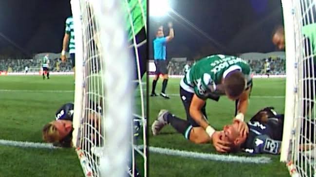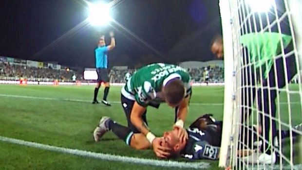 Takım arkadaşının zor durumda olduğunu gören Sporting’in stoperi Sebastian Coates, Salin’in yardımına adeta bir ’kahraman’ gibi koştu ve baygın bir biçimde yerde yatan arkadaşının elini ağzına götürerek nefes almasını sağladı.