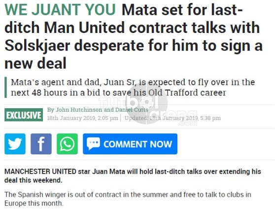 The Sun'da yer alan habere göre, Manchester United'da teknik direktör Ole gunnar Solskjaer'in takımda tutmak istediği Juan Mata'nın sözleşmesi yenileniyor. İspanyol futbolcunun menajeri olan babası Juan Sr'nin 48 saat içerisinde Manchester'a giderek yöneticilerle masaya oturacağı belirtildi. Mata'nın haftalık 170 bin sterlinlik maaşının düşürülmesinin istendiği ve takımda kalmak isteyen oyuncunun da bu teklife sıcak baktığı iddia edildi.