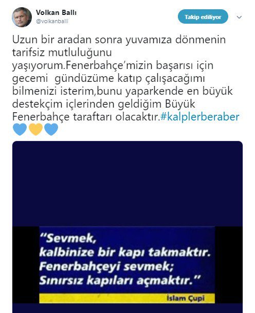 FutbolArena - Fenerbahçe yeni İdari Menajeri Volkan Ballı’dan heyecanlandıran paylaşım geldi.