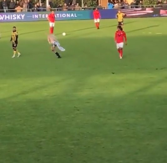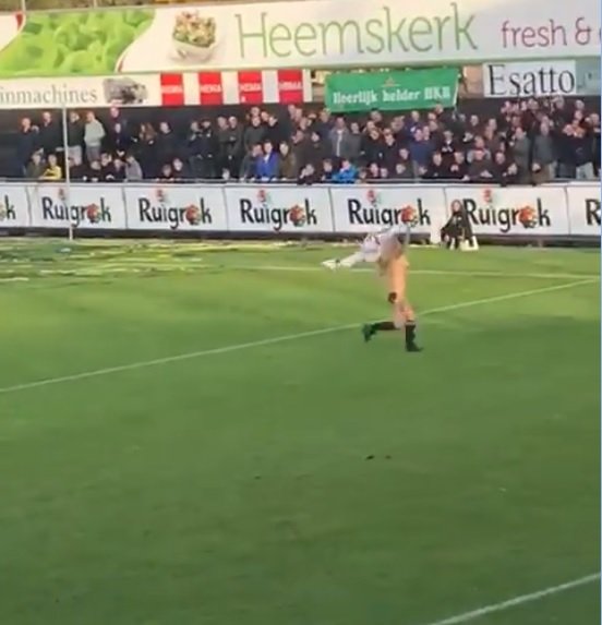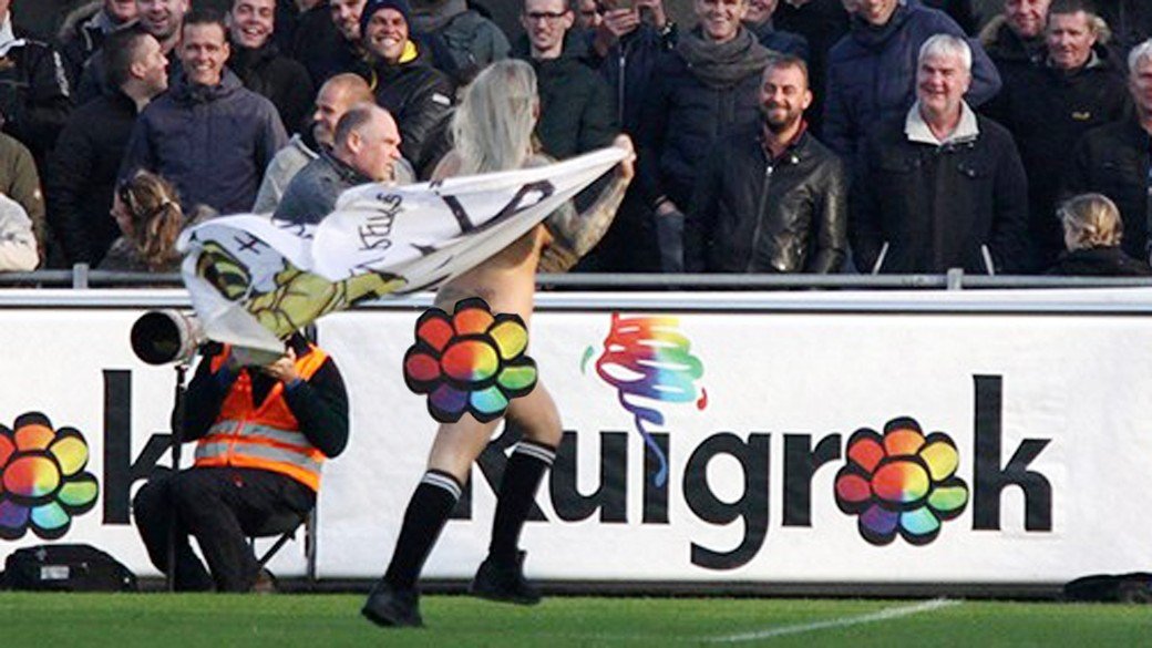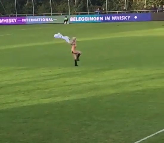 Hollanda alt ligler maçında Amsterdam ile Reinsburgs arasında oynanan maçta futbol sahalarında eşi benzeri görülmemiş bir an yaşandı. Amsterdam’ın 6-2 kazandığı maçın ortasında sahaya çıplak bir kadın taraftar girdi.