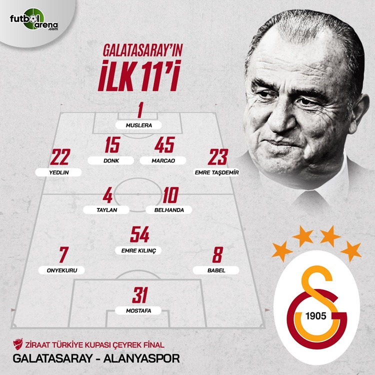 Galatasaray ilk 11'i: Muslera, Yedlin, Donk, Marcao, Emre Taşdemir, Taylan, Belhanda, Emre Kılınç, Babel, Onyekuru, Mohamed