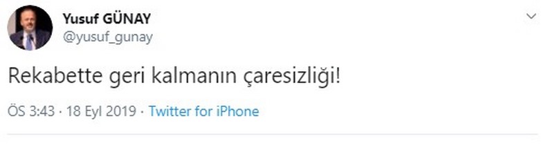 Galatasaray Başkan Yardımcısı Yusuf Günay, Ali Koç'un açıklamalarından kısa süre sonra sosyal medya hesabından yaptığı paylaşımda, "Rekabette geri kalmanın çaresizliği!" ifadelerini kullandı.