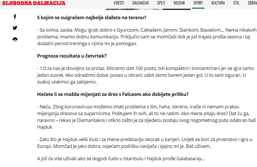Hayır hayır. Koronavirüs nedeniyle sorun olabilir. Dürüst olmam gerekirse maçtan sonra pek forma değiştiren birisi değilim. Tabii ben herkese saygı duyuyorum ama bu benim tercihim değil. Tabii Falcao benden forma isterse elbette formamı veririm.
