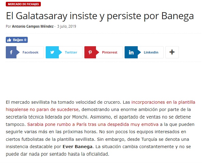 Peki Banega'nın Galatasaray'a transferinde son durum ne? İspanyol basınındaki haberlere göre; Sevilla'nın transfer gündeminde büyük hareketlilik devam ederken bu hafta oyuncu satışlarında da aynı hareketliliğin devam edeceği öne sürüldü. Diğer tarafta Galatasaray'ın ise Banega ısrarı sürüyor. Galatasaray'ın Banega konusunda ısrarının devam ettiği fakat hala somut bir gelişme yaşanmadığı yazıldı. Ancak Sevilla'da bu hafta oyuncu satışı konusunda yine büyük bir hareketlilik beklenirken, Banega transferinde de Galatasaray'la ilgili somut gelişmelerin yaşanabileceği ifade edildi.