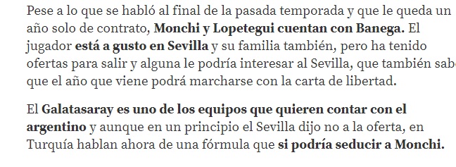 İspanyol basınındaki haberlere göre, Galatasaray ile Sevilla arasındaki görüşmeler neticesinde Sevilla yönetimi Galatasaray'ın son teklifine sıcak bakıyor. Bu teklif içinde Fernando'nun takas yoluyla önerilmesi de yer alırken, Banega ise ilk önce İspanya'da mutlu olduğu için Galatasaray'a hayır demesine rağmen son teklifin ardından sarı kırmızılılara gelmeye daha olumlu yaklaşıyor.