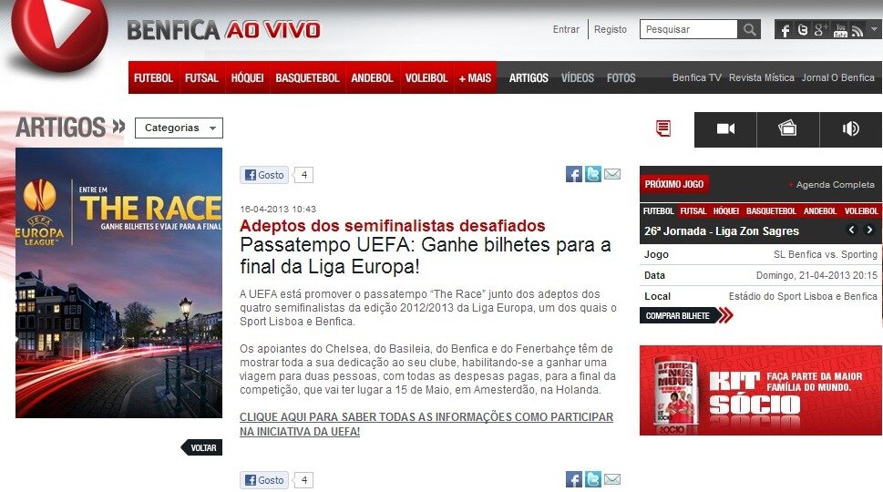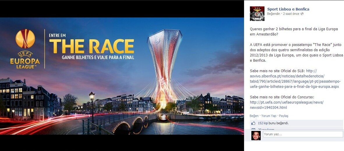 Resmi sitede Benfica taraftarlarının yarışmaya katılması istenirken "Finale bilet kazanmak ister misiniz?" duyurusu yapılıyor. 25 Mayıs - 2 Nisan tarihleri arasında oynanacak iki yarı final maçı öncesi Portekiz tarafında yükselen "Finaldeyiz" güveni Türk taraftarların tepkisini topluyor.