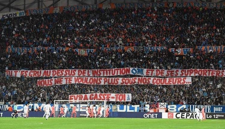 Marsilya taraftarları, Avrupa Ligi'nde Vitoria Guimaraes maçında taraftara tekme atan Patrice Evra'ya cevap verdi.