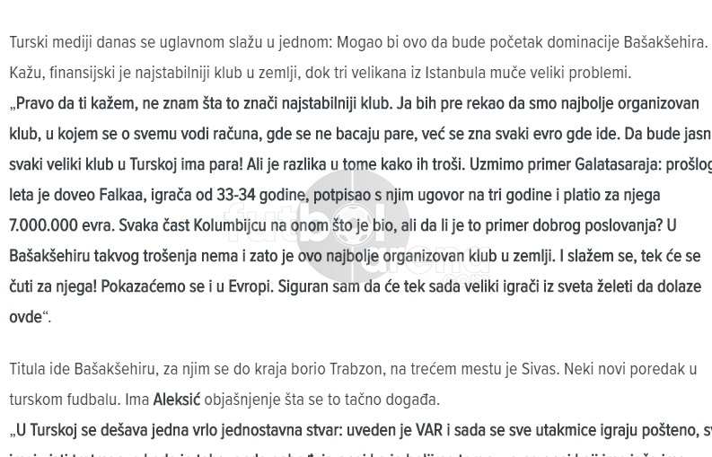 FutbolArena Dış Haberler - Medipol Başakşehirli futbolcu Aleksic, şampiyonluğun ardından Türk futbolu ve Başakşehir hakkında çok çarpıcı açıklamalarda bulundu.