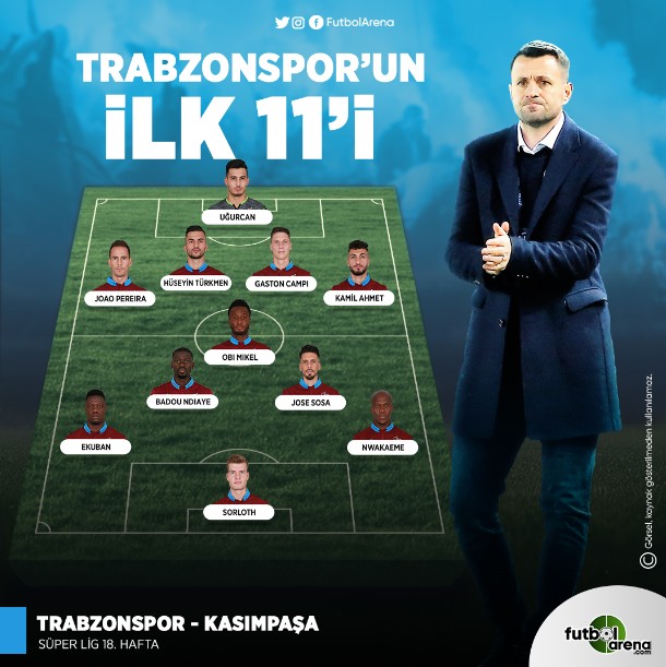 Trabzonspor: Uğurcan, Pereira, Hüseyin, Campi, Kamil, Mikel, Sosa, Ndiaye, Nwakaeme, Ekuban, Sörloth