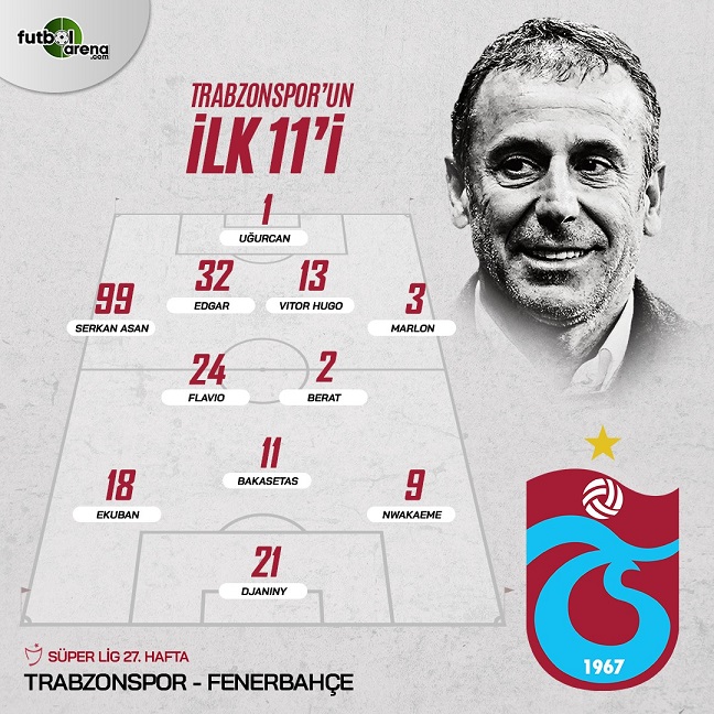 Trabzonspor: Uğurcan, Serkan Asan, Edgar Ie, Vitor Hugo, Marlon, Flavio, Berat Özdemir; Ekuban, Bakasetas, Nwakaeme; Djaniny